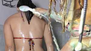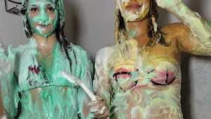 After having a funny board game that resembles the classic battleship board game, and getting tons of mess, the girls proceed for a shower to get wet together! Starring: | ||||